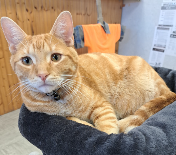Given how affectionate he is, and because she already had four cats at home, Karli thought he would make a good office kitty. Although, she didn’t have the heart to leave him at the office every night, so he does go back and forth with her. He loves people and getting love from them. He also likes his naps and trying to get into the office plants… He would love a visit on Mondays, Wednesdays and Fridays!